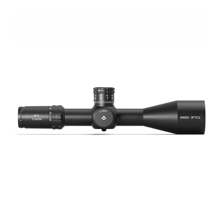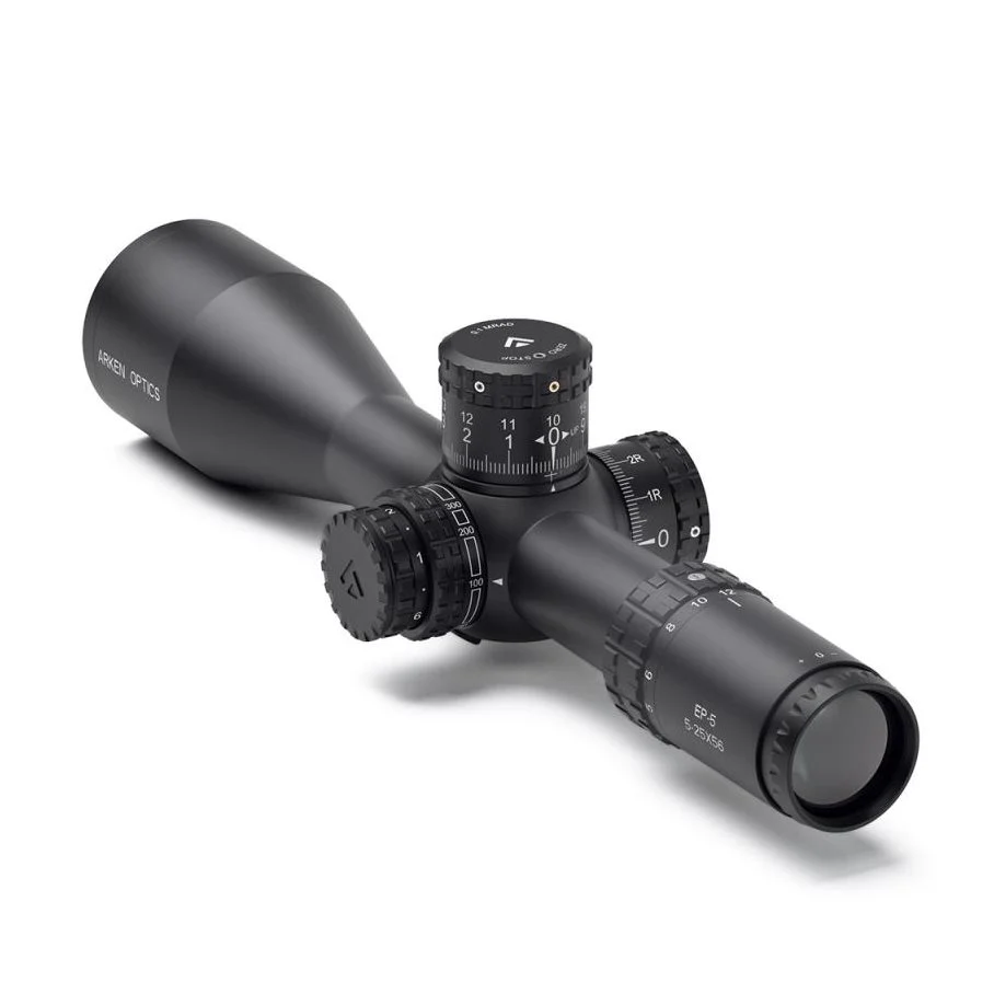 Med ett stort förstoringsspann kombinerat med högklassig japansk optik, mil/mil justering, zero stop, och medförstorande riktmedel kan Arken Optics EP5 5-25×56 FFP VPR användas med stor framgång i alla former av långhållsskytte. Detta siktet presterar i nivå med de allra bästa siktena på marknaden både när det gäller den optiska egenskaperna och också mekaniska.