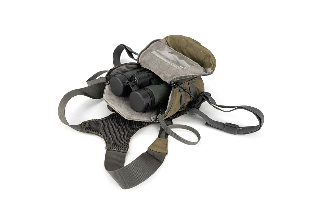 Element Helix HD kikarnas väska är en av de absolut bästa kikarväskorna på marknaden. Den är tillverkad i mycket robust material, håller militärstandard när det gäller slitaget och är mycket väl genomtänkt med öppningen nedåt och inte uppåt, för att underlätta tillgången till kikaren i alla lägen. Väsken följer det militära funktionalitets tänkte och är utrustad med Mollesystem för att underlätta att bygga på med ytterligare tillbehör vid behov eller hänga en avståndsmätare eller en värmekamera på sidan om. Den har en bakficka i vilken man kan förvara saker eller rent av en smörgås som man vill ha med sig när man ute i naturen. En mycket påkostad väska som imponerat mycket.