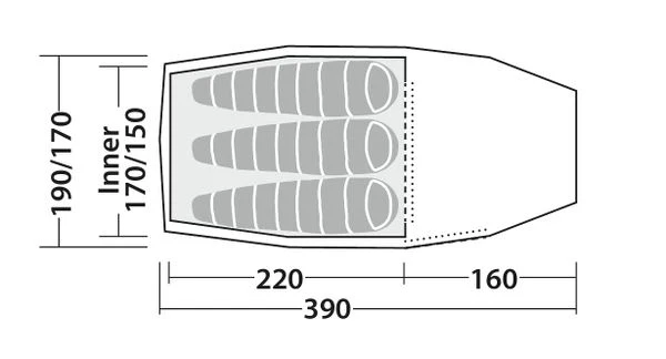 - Tältunderlag i innertält: 75D polyestertaft 185T PU-belagd, 6000 mm