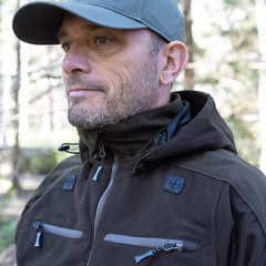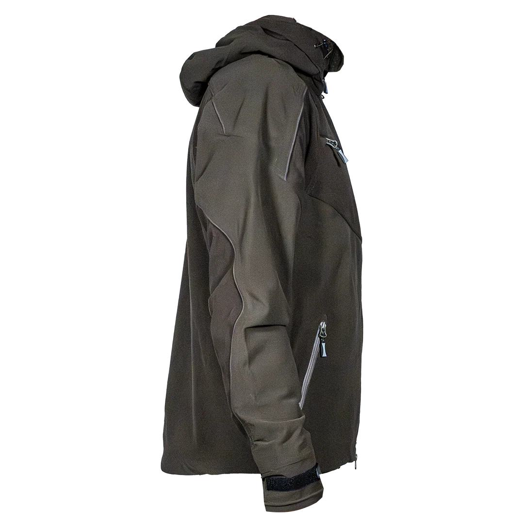 Denna jaktjacka har en hög krage och justerbara huva vilket håller dig väl skyddad även i de tuffaste vindarna. De dagar som den ej behövs kan du enkelt ta av den. Jackan har även radiofickor på båda sidor vilket gör att jackan kan användas av såväl höger- som vänsterskyttar.