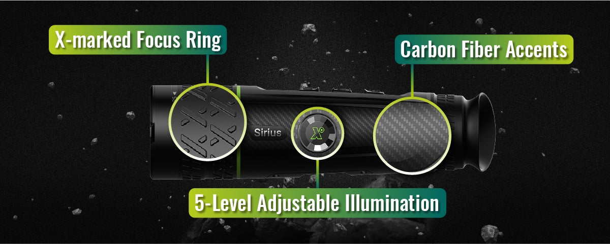 - 6 olika färg filter: white hot / black hot / iron red / alarm / amber / emerald